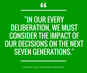 “We should consider in all our deliberations, the impact of our decisions on the next seven generations.” Iroquois saying.