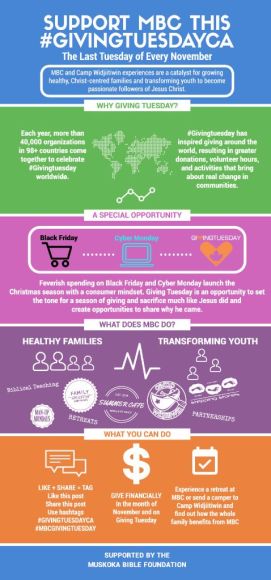 When supporting the Muskoka Bible Foundation (Muskoka Bible Centre & Camp Widjiitiwin) this Giving Tuesday, you will be supporting the individual ministries working to impact families and individuals for a healthy spiritual walk.