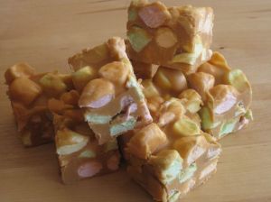 - Refrigerate and cut into small (1-1/2″) squares.
