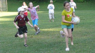Widjiitiwin Basketball is the signature game of Camp Widjiitiwin in Muskoka, Ontario, Canada. Widji Ball is a combination of basketball, rugby, soccer and football.There are five balls in play, so it’s like there are five games going on at the same time. There are balls for each of guy campers, girl campers, guy staff, girl staff and an all ball. Each group concentrates on their ball and not running into people smaller than they are. SALTers (our leadership campers) join in with staff or can have their own ball. Widji ball is played as two hand touch or with flags. It gets quite competitive as you can imagine.